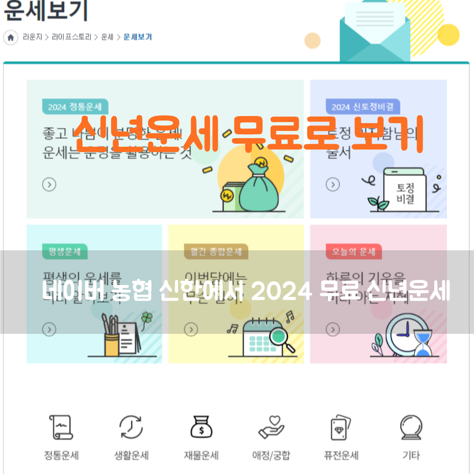 네이버와 농협, 신한 은행에서 신년운세 무료로 볼 수 있는 방법이 있으니 참고해 보시면 좋을 것 같습니다.