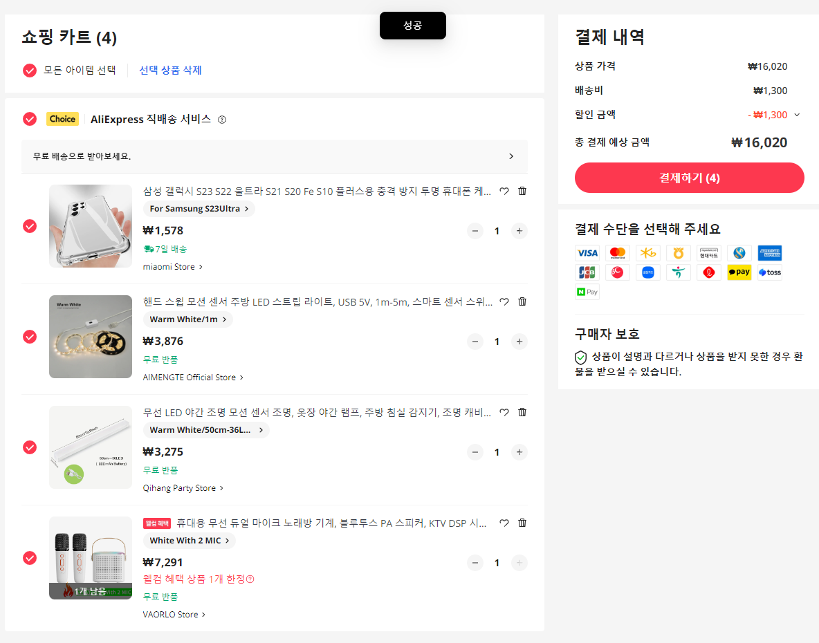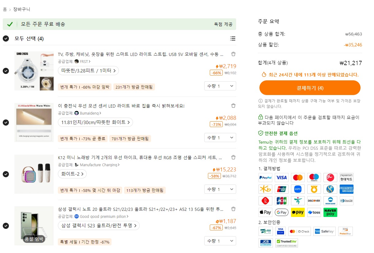 3. 알리든 테무든 한 곳에서 필요한 제품을 장바구니에 담은 다음 다른 곳에 가서 똑같은 제품을 그대로 담아서 가격을 비교해 본다.