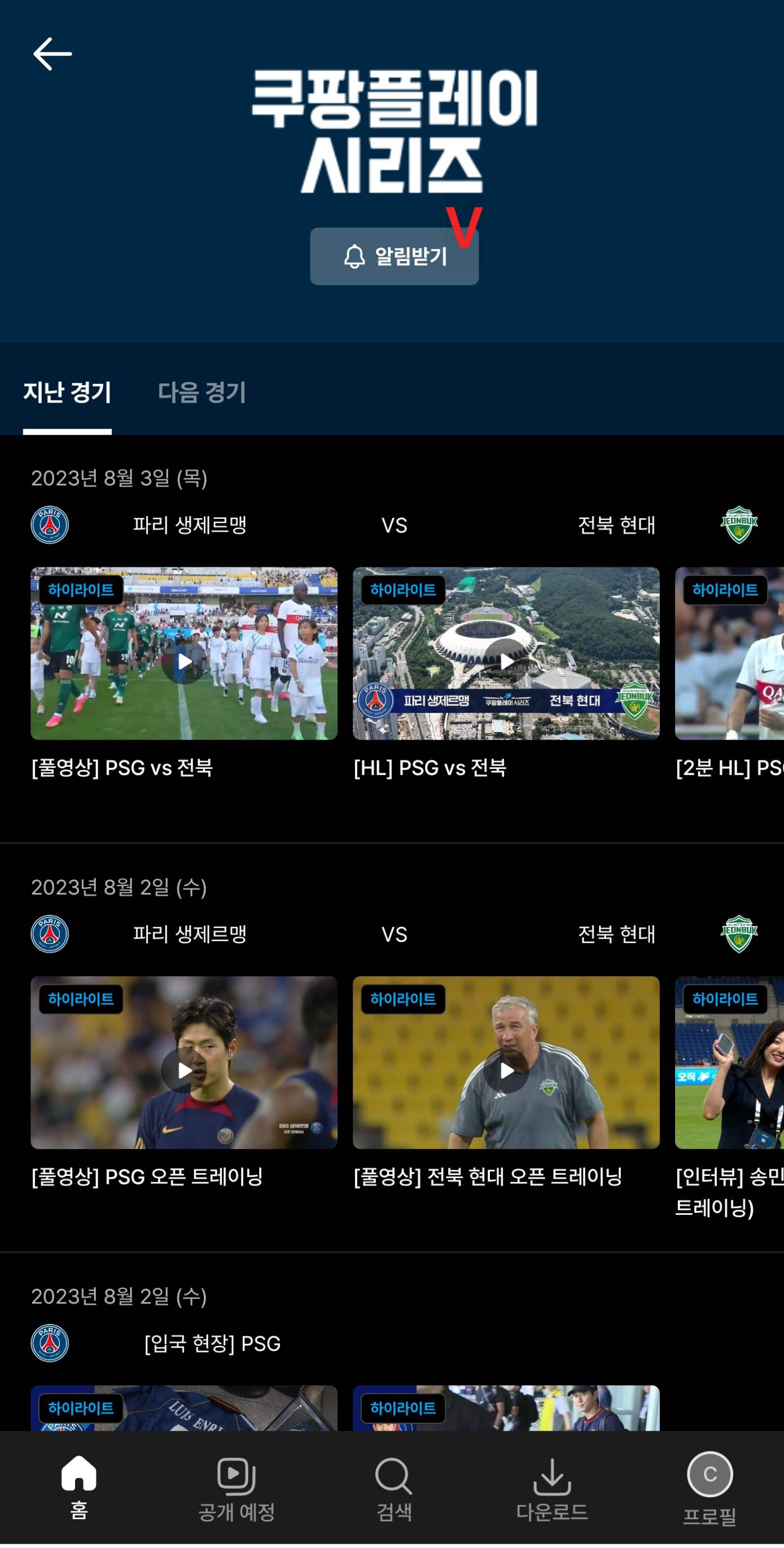 2. 쿠팡플레이에서 티켓 알림 설정