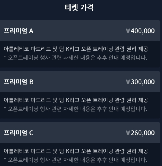 위 금액은 참조만 하시고 실제로 티켓팅 일정이 나오면서 같이 오픈이 될 것 같습니다!